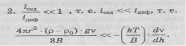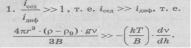 Это условие должно выполняться, когда Т и dv /dh велики, а а (ρ- ρ0) и v — малы. Но и здесь решающую роль играет радиус частиц. Установлено, что это неравенство выполняется при r = < 10-5 см. В этом случае можно пренебречь седиментацией, диффузия приведет к равномерному распределению частиц по всему объему сосуда. Дисперсная система является седиментационно устойчивой.