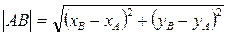 Итак, обратное преобразование координат от декартовых к полярным требует более аккуратной записи и в зависимости от знаков х и у выражается формулами (2), (3); (2), (4); (2), (5) или (2), (6). Вернемся к декартовой записи координат. Если необходимо найти координаты направленного отрезка, начало и конец которого не совпадают с началом координат, то, обозначая начало отрезка А, конец В, имеем: АВ = (xB — xA;yB — yA) Направленный отрезок АВ как упорядоченная пара точек называется вектором АВ. Если ввести радиус-векторы точек А и В, координаты которых являются концами соответствующих радиус-векторов rA и rB, то AB = rB — rA = (xB — xA;yB — yA) Длина вектора АВ очевидным образом определяется по теореме Пифагора: