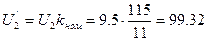 Приклад 2.1. При номінальному коефіцієнті трансформації напруг на шинах НН рівна 9,5 кВ. Після приведення її до сторони ВН вона буд, рівна