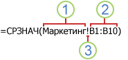 Ссылка на другой лист. В приведенном ниже примере функция СРЗНАЧ используется для расчета среднего значения диапазона B1:B10 на листе "Маркетинг" той же книги.