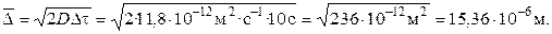 По уравнению Эйнштейна – Смолуховского определяем средний сдвиг частиц