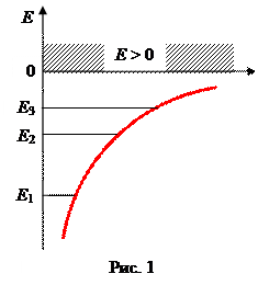 Е 1 - основная энергия; Е 2, Е 3, … - возбужденные энергии; при n ®¥ E ¥ = 0; при E >0 движения электрона свободные, что соответствует ионизированному газу. Собственная функция y определяется четырьмя квантовыми числами. 1. Главное квантовое число n определяет энергетические уровни электрона в атоме и принимает любые целочисленные значения, начиная с 1: n = 1, 2, 3, ….