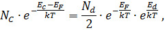 Рассмотрим область очень низких температур, когда EF – Ed >> kT. В этом случае в знаменателе (5) единицей можно пренебречь и тогда (5) перепишется