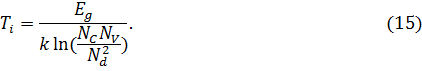 Согласно (15), чем шире запрещенная зона (Eg) и чем больше Nd, тем выше Ti. При Nd=1016 см-3 в германии Ti =480K. Значение Ti определяет предельную температуру работы большинства полупроводниковых приборов.