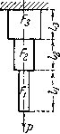 Деформацию ступенчатых стержней следует определять по частям, выполняя подсчеты по отдельным призматическим участкам. При определении деформации каждого участка учитывается не только его собственный вес, но и вес тех участков, которые влияют на его деформацию, добавляясь к внешней силе. Полная деформация получится суммированием деформаций отдельных участков.