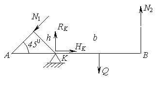 Решение. Абсолютно жесткий брус опирается на шарнирно неподвижную опору и прикреплен к двум стержням при помощи шарниров (рис