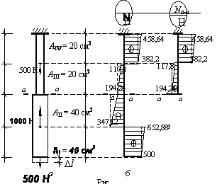 Знак «минус» в ответе показывает, что общая длина стержня уменьшится, т.е. нижний конец стержня переместится вверх вдоль его оси на величину Определить перемещение нижнего конца стержня, изображенного на рис. а. Принять