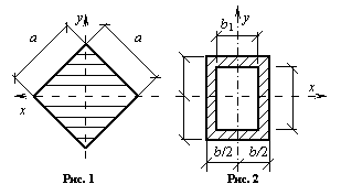 Ответ к рис.1: Ix = Iy= a 4/12. Ответ к рис.2: Ix = (bh 3 – b1h1 3 )/ 12; Iy = (hb 3 – h1b1 3 )/ 12.