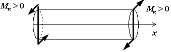 Зная величины внешних скручивающих моментов и используя метод сечений, мы можем определить крутящие моменты, возникающие в поперечных сечениях вала. Крутящий момент М к в сечении вала числено равен алгебраической сумме внешних скручивающих моментов, действующих по одну сторону от сечения, при этом могут рассматриваться как левая, так и правая отсеченные части вала. Примем правило знаков для крутящего момента: его положительное направление соответствует повороту сечения по ходу часовой стрелки, если смотреть на сечение со стороны внешней нормали (рис. 5.2).