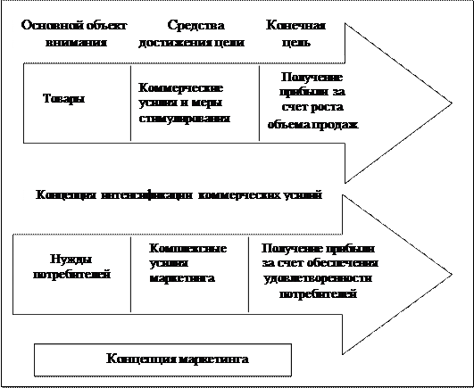 Рис. Со поставление концепции интенсификации коммерческих усилий и концепции маркетинга