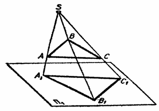 Рис. 1.1. В начертательной геометрии используют метод параллельного проецирования (рис. 1.2.). Как и в предыдущем случае, выбирают плоскость проецирования П1, но вместо центра проекции S задают направление проецирования s, т. е. считают, что точка S – центр проекции – расположена в бесконечности и поэтому проецирующие лучи параллельны между собой. Плоскость П1 и направление s составляют аппарат параллельной проекции. Чтобы спроецировать треугольник АВС на плоскость П1, через вершины А, В, С проводят проецирующие лучи параллельно направлению проецирования s. Треугольник А1В1С1, образованный пересечением лучей АА1, ВВ1, СС1 с плоскостью П1, и будет параллельной проекцией треугольника АВС.