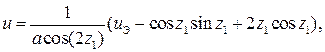 Даже хотя спроектированный линейный регулятор может стабилизировать объект в малой окрестности точки равновесия (0,0), но совершенно не очевидно, что этот регулятор может стабилизировать его в целом. Специфическая трудность заключена в нелинейности, входящей в первое уравнение состояния (6), т.к. она не может быть сокращена с помощью управляющего сигнала u. Рассмотрим следующее преобразование состояния