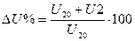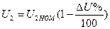 звідси видно, що процентна зміна напруги пропорційна навантаженню і її коефіцієнту потужності. Знаючи величину U% неважко визначити напругу на навантаженні: