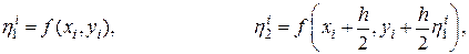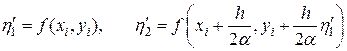 Любой метод из семейства методов Рунге-Кутты второго порядка (7.30) реализуют по следующей схеме. На каждом шаге, т.е. при каждом