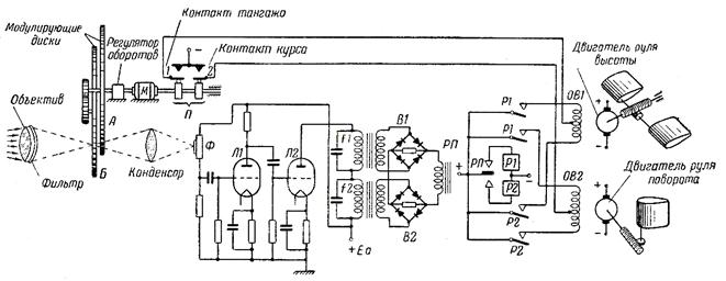 Схема инфрокрасной головки самонаведения с применением оптического координатора