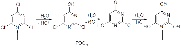 Нуклеофилы атакуют пиримидиновое кольцо в места с наименьшей электронной плотностью – 2, 4, 6; электрофилы – в положение 5, имеющее относительно более высокую электронную плотность. Электрофильные реакции затруднены из-за в целом пониженной π-электронной плотности, а нуклефильные – наоборот облегчены: