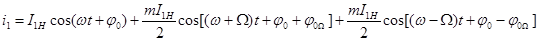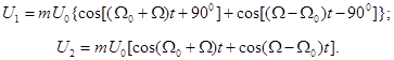 где m – в данном случае коэффициент пропорциональности, связанный с коэффициентом амплитудной модуляции; Ω0 = 2 πF 0; Ω = 2 πF. Эти напряжения поступают на фильтры нижних боковых полос ФНБП1 и ФНБП2 соответственно, на выходах которых создаются напряжения