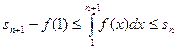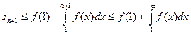 Выберем натуральное число k и рассмотрим значения х на отрезке k ≤ x ≤ k + 1. Тогда в силу убывания функции f f(k) ≥ f(x) ≥ f(k + 1). Проинтегрировав