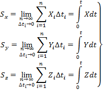 Импульс силы за конечный промежуток времени выражается определенным векторным интегралом. Проекции вектора