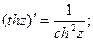 Определение. Функция f(z), имеющая непрерывную производную в любой точке области D называется аналитической функцией на этой области. Правила дифференцирования функций комплексного аргумента не отличаются от правил дифференцирования функций действительной переменной. Аналогично определяются производные основных функций, таких как синус, косинус, тангенс и котангенс, степенная функция и т.д. Производные гиперболических функций определяются по формулам: