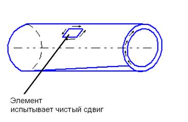Осуществить чистый сдвиг сложно, почти всегда сопутствует изгиб. Чистый сдвиг можно осуществить путем испытания тонкостенных трубок на кручение.