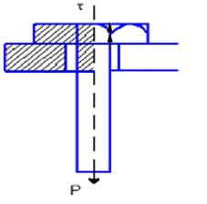 Q – перерезывающая сила в сечении, А – площадь, [τ] – допускаемые напряжения на срез. Можно принять [τc]=0,5 ÷0,6 [σв] – для пластичных материалов [τc]=0,7 ÷ 1 [σв] – для хрупких материалов. В нашем случае Q=P. При небольшой толщине соединяемых деталей (болтами, заклепками) и значительной нагрузке между поверхностью соединительной детали и стенками отверстия возникает большое взаимное давление, называемое напряжением смятия σсм.
