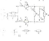 1.1 сурет. Электр тізбегінің сұлбасы (а) кен тізбек элементтердің шартты белгілері(б): 1- электр энергиясының көзі: 2- екі полюсті ажырытқыш: 3- сақтандырғыш: 4- электр қабылдағыш. Электр тізбегі деп электрлік үрдістері электр козғаушы күш (ЭҚК), ток және кернеу ұғымдарымен түсіндірілетін. электр тогы жүретін жол түзетін кондырғылар мен кұрылғылардын жиынтығын айтады. Электр тізбегі үлкен үш бөліктен тұрады: электр энергиясы кездерінен, электр энергнясын тасымалдайтын тарататын һәм оны баскаратын қондырғылар мен кұрылғылардан және электр кабылдағыштардан. Электр энергиясының көзі деп басқа бір энергияны электр энергиясына' түрлендіруге арналған қондырғыны немесе аспапты айтады. Мысалы. аккумулятор, электр генераторы (машина), гермоэлектр генераторы, фотоэлемент, т.о. Электр энергиясын тасымалдайтын. тарататын кұрылғылар мен кондырғыларға және баскаратын аспаптарға электр желілері. трансформаторлар. ажыраткыштар. сактандырғыштар, релелер т.с.с. жатады. Электрлік кабылдағыш деп,. әдетте,. электр энергиясын баска энергияға түрлендіруге арналган кондырғыны. кұрылғыны немесе аспапты айтады. Мысалы, электрлік козгалткыштарда электр энергиясы негізінен механикалык энергияға турленсе. электролиз астауларында химиялык реакцияның энергиясына түрленеді. Электр тізбектерін әртүрлі максаттағы жұмыстарды орындау үшін графикалық турде кескіндейді. Электр тізбегінің шартты белгілер аркылы келтірілген графикалык кескіні электрлік сұлба деп аталады (1.1 -сурет). Электрлік сұлбалар максатына карай монтаждык. функциялык. паркылык. орынбасарлык т.с.с. болын бөлінеді. Шартты белгілердің графикалык кескінін және мөлшерін халықаралық шартты белгілерге сәйкестендіре отырып Мемлекеттік Стандарт (МСт) кабылдаған. Сондықтан олардың кескінін және мөлшерін бұрмалауға болмайды. Электр тізбегіндегі әрбір кондыргы, құрылғы немесе аспап тізбектің элементі деп аталады. Тізбек элементтерін. шартты графикалык белгілермен катар, шартты әріптермен белгілеу де кабылданған. Мысалы. электр энергиясы көзін G әрпімен белгілеу кабылданған. ал графикалык белгілеудегі тілсызык (стрелка) әрқашанда корек козінің потенциалы жоғары нүктесін көрсетіп тұруы керек.Тізбекін бір ток жүретін бөлігі тармак деп аталады. Қарастырылып отырган тізбекте үш тармак бар: cdGab, ЬКЗе және bR4c. Үш не одан да көп тармактардың косылган нүктесі түйін деп аталады (cуpeттe а және е). Электрлік сұлбада түйінді нүкте койып белгілейді. Егер нүкте койылмаса, онда сымдар электрлік байланыспаган, айкасып қана жатыр деп есептелінеді. Тізбектің ток жүретін кез-келген тұйыкталған бөлігі өнбой (контур) деп аталады. Келтірілген тізбекте үш контур бар: bR3cdGab, bR4cR3b және сырткы контур bR4cdGab. Ең болмаса бір тармағы бойынша айырыкшаланатын контурларды өзара тәуелсіз контурлар деп атайды. Электр тізбегінде элементтер бірізді (тізбектей), параллель және аралас турде жалғанады. Егер тізбек элементтері олармен бір ток өтетіндей етіп,яғии бірінін аяғы екіншісінің басымен. екіншісінің аяғы үшіншісінін басымен т.с.с. жалганса» онда мұндай жалғануды бірізді жалғау деп атайды.Егер тізбек элементтері бір кернеулі болатындай етіп. ягни бастары бір түйінделіп. ал аяктары өзара бір үйінделіп жалғанса, онда мұңдай жалғануды параллель жалғау деп атайлы. Суретте RI меи R2 электр кабылдағыштары бірізді, ал R3 пен 