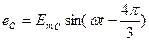 Екінші жактауша (ВУ) бірінші жактаушамен сағат тілінің бағытында 120е' жасап орналасатындыктан, ондағы ЭКК-тің синусоидасы нөлдең он мәнге есе бастағанда бұрыш (уакыт) өсін координаттор басынан оңға карай 120е кашыктыкта киыи өтеді, яғни бірінші жактаушанын ЭКК-нен фазасы бойынша 120° -ка ығыскан. ал уакыт бойынша одан периодтың үштен біріне калып отырады (4.2-6-сурст). Ендеше екінші жактаушаның (ВУ) ЭҚК-і (2.5)