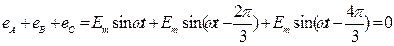 өйткені қорек көзінің фазалық кернеулерінің кез келген мезеттегі алгебралық қосындысы нөлге тең: