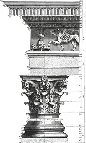 Рис. 9.1. Храм Антонина и Фаустины в Риме. Фрагмент колоннады, реконструкция ордера