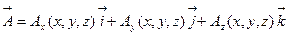 Определение: векторным полем называется часть пространства (или всё пространство), в каждой точке которого задана некоторая векторная величина , где - проекции вектора на оси координат, которые зависят от координат точки М(х,у,z). Т.о. задание векторного поля равносильно заданию трёх скалярных полей – проекций векторного поля на направление единичных векторов .