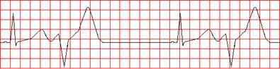 Экстрасистола представляет собой преждевременное сердечное сокращение, возникающее под действием импульса, появившегося вне синусового узла. Компенсаторная пауза - это расстояние от экстрасистолы до следующего за ней цикла PQRST основного ритма. Экстрасистолы могут бытьединичными, парными и групповыми;монотопными - исходящими из одного эктопического источника и политопными, обусловленными функционированием нескольких эктопических очагов образования экстрасистолы. В последнем случае регистрируются отличающиеся друг от друга по форме экстрасистолические комплексы. Разновидности экстрасистолий: 1) Единичная