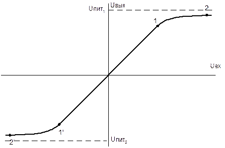 На участке 1–1’ режим работы ОУПТ линейный, где применим принцип суперпозиции, и выходное напряжение можно рассматривать как сумму реакций от входных сигналов: