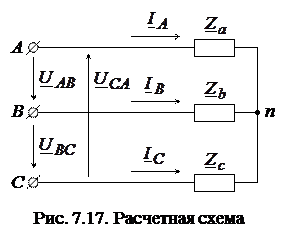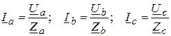Зная фазные напряжения и нагрузки фаз, находим токи