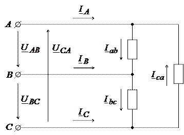 Рассмотрим расчет несимметричной нагрузки, соединенной «треугольником»