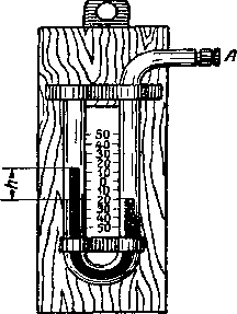 ПРИБОРЫ ДЛЯ ОПРЕДЕЛЕНИЯ ДАВЛЕНИЯ И УЧЕТА РАСХОДА ЖИДКОСТЕЙ И ГАЗОВ В ТРУБОПРОВОДАХ Лекция 26 Давление в водопроводной линии, газоопроводе и других трубопроводах термических цехов измеряется приборами, которые называются манометрами. Небольшие давления (до 105 Па ) в воздухопроводе низкого давления измеряют наиболее простым, жидкостным манометром. Он представляет собой U-образную стеклянную трубку, заполненную рабочей жидкостью — водой, ртутью или спиртом (рис.1). Если один конец трубки А соединить с помощью резинового шланга с трубопроводом, а другой конец оставить открытым, то уровень жидкости в открытом конце трубки поднимется. Величина давления Р вычисляется по формуле Р = hy, где h — разность уровней рабочей жидкости в коленах трубки;