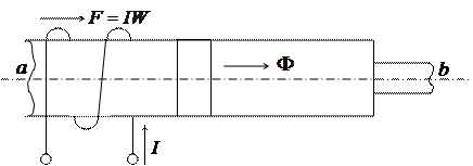 Графический расчет неразветвленной цепи, состоящей из источника намагничивающей силы, ферромагнитного нелинейного участка и линейного участка, показан на рис. 5.10.