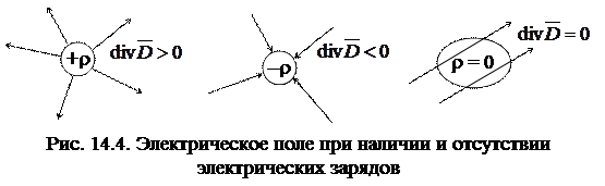 Если div Если div Если div Картина электрического поля при наличии и отсутствии зарядов показана на рис. 14.4. Например, если имеется объемный положительный заряд +r, то он является истоком вектора электрического смещения
