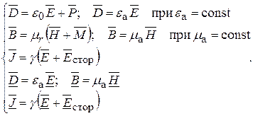 Поток вектора электрического смещения через замкнутую поверхность равен алгебраической сумме свободных зарядов, находящихся внутри замкнутой поверхности. 5. Уравнения связи между векторами