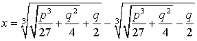 где Полученное решение теперь известно как формула Кардано, и в случае уравнения
