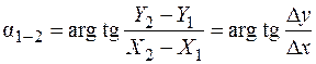 Якщо визначити прямокутні координати кінцевих точок лінії X 1, Y 1; X 2, Y 2, то дирекційний кут a1-2 можна аналітично обчислити за формулою