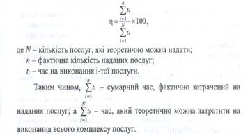 Рівень обслуговування можна оцінювати також співставляючи час на виконання логістичних послуг, які надаються фактично в процесі постачання, з часом, який необхідно було б затратити для надання всього комплексу можливих послуг у процесі того ж постачання. Розрахунок виконують за такою формулою: