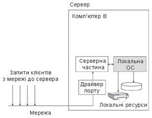 Рис. 13.3. Функціонування вузла, що суміщає функції клієнта і сервера.