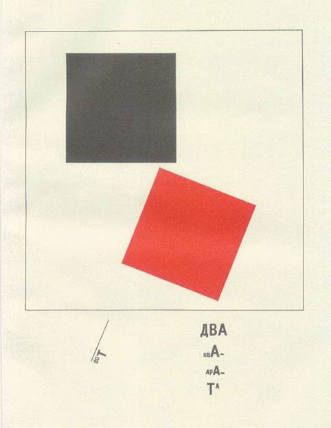Як новатор книги Лісицкий виступив ще в час викладання у Вітебському художньому училищі, він прагнув «нову книгу зробити матеріалом самої книги», користуючись лише елементами набірної каси. Призначення і вміст книги визначають її структуру. Художник-поліграфіст повинні не прикрашати книгу, але її конструювати. Тому доцільно організована книга може бути уподібнена архітектурній споруді. Лісицкий вважав шрифт основним будівельним матеріалом книжкової архітектури. Форма друкарського шрифту додає слову різні смислові відтінки, комбінації накреслювальних (графічних) і просторових (розмірних) форм шрифту фіксують увагу на певному слові або відрізку мови. До практичної розробки нової друкарської мови Лісицкий приступив в 1922 році. Першою виданою ним в Берліні роботою була книга, призначена для дітей. «Сказ о двух квадратах» адресований «всім, всім хлоп'ятам», як стимул-реакція для захоплюючої гри: «Не читайте — беріть папірці, стовпчики, деревинки, складайте, фарбуйте, будуйте». Проект книги був розроблений ще в 1920 році, її сюжет пов'язаний з відомим плакатом Лісицкого «Клином червоним бий білих!». Вже в цій роботі Лісицкий показав своє високе уміння при граничній економії образотворчих засобів досягати максимальної виразності.