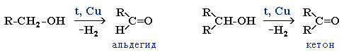 2. В промышлености альдегиды и кетоны получают дегидрированием спиртов, пропуская пары спирта над нагретым катализатором (Cu, соединения Ag, Cr или Zn).