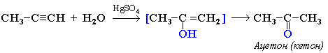 Кетоны получают при гидратации других гомологов ряда алкинов: