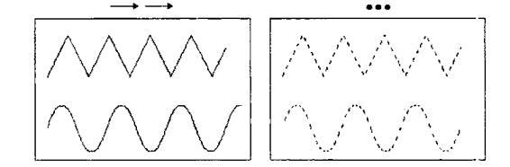 Рис. 17. Осциллограммы получающиеся, если усилители поочередно пропускают усиленные сигналы.