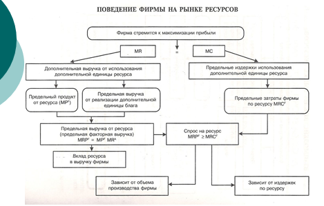 ¡ Из анализа рынка готовых товаров нам известно, что фирма максимизирует прибыль при условии: MR = MC. ¡ Применительно к рынку ресурсов, условием максимизации прибыли фирмы будет такое соотношение между затратами на ресурс и доходами от его применения, когда цена ресурса (например, цена труда PL), будет равна предельному продукту ресурса (труда) в денежном выражении: PL = MRPL. ¡ Аналогичная закономерность выполняется в отношении любого другого ресурса, например, капитала: PK= MRPK
