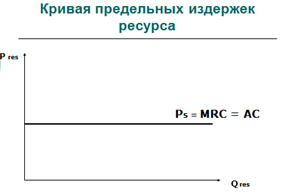 Фирма осуществляет наем дополнительного работника, если дополнительный доход от его труда больше, чем издержки на зарплату. Предельный продукт (MP-marginal product)- дополнительный продукт, полученный от использования дополнительной единицы ресурса. Предельная производительность ресурса (MPR-marginal revenue product)- прирост дохода фирмы от реализации дополнительной единицы продукта (предельный продукт в денежном выражении) ¡ MRP = MP * MR; MRP = P * MR ¡ Зависимость: чем больше единиц ресурса использует фирма, тем ниже предельная производительность каждой из них. ¡ При закупке факторов производства фирма учитывает издержки каждой дополнительной единицы фактора производства – предельные издержки ресурса ( MRC -marginal resource costs). ¡ На величину предельных издержек ресурса влияют цены предложения ресурса. На рынке СК цена ресурса постоянна, т.к. домохозяйства не влияют на цену предложения. Для фирмы-покупателя кривая предложения - это кривая ее предельных издержек (MRC).