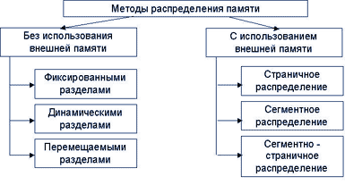Рис.9 Основные методы распределения памяти. Алгоритмы распределения памяти без использования внешней памяти